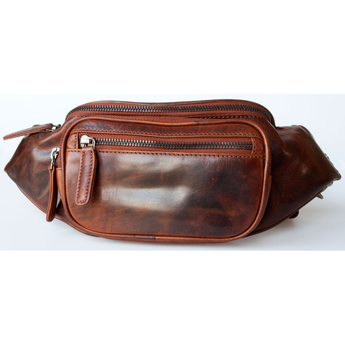Kožená ledvinka z měkké kůže s třemi kapsami s látkovou podšívkou bez značek...