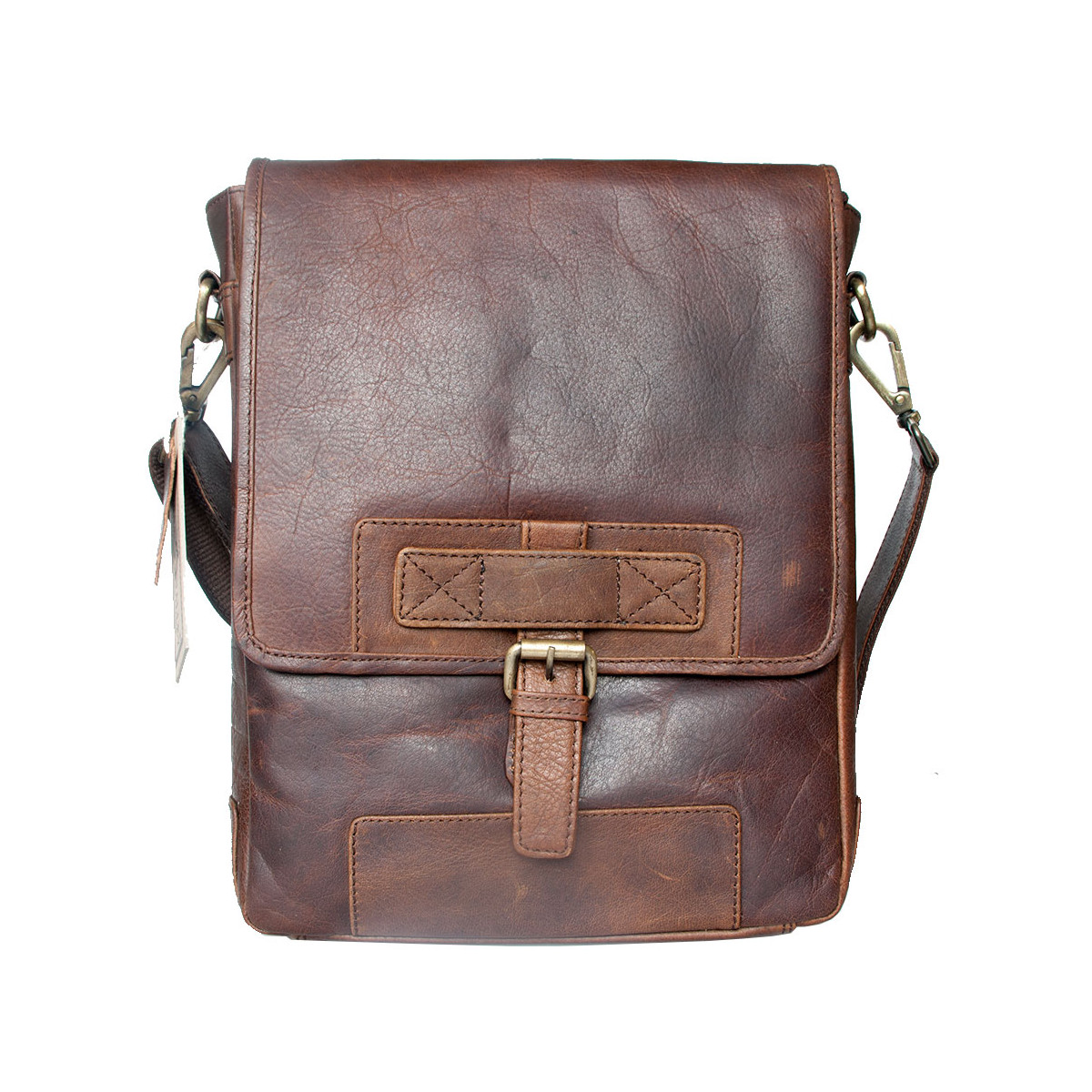 Velká pánská taška z pevné kůže s popruhem přes rameno bez značek a nápisů....