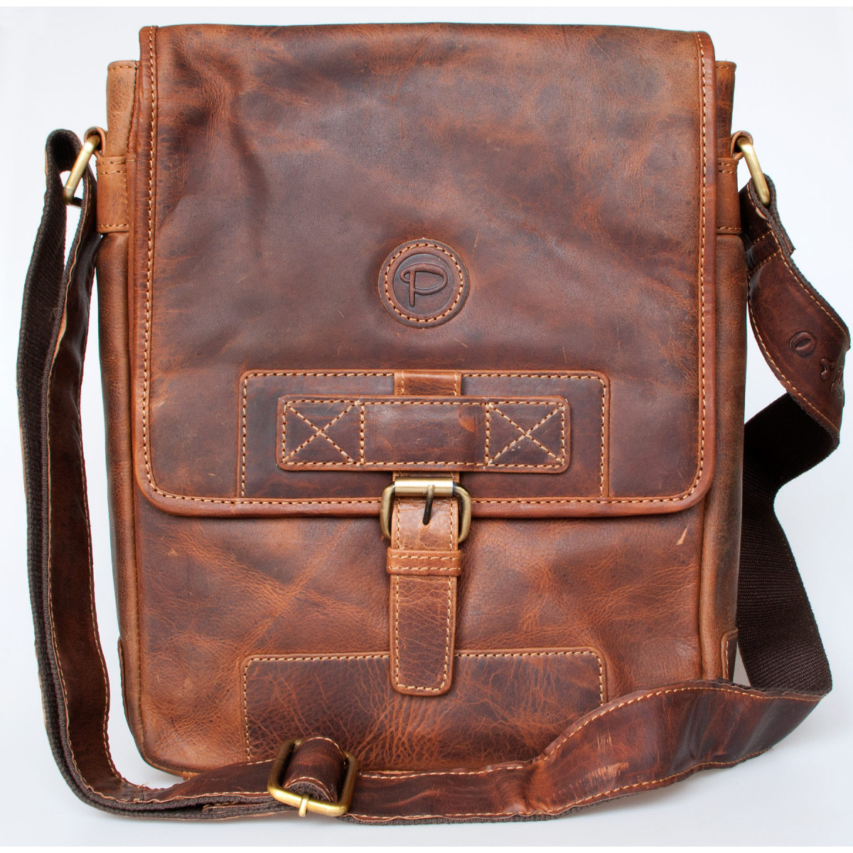 Větší pánská taška Pedro z pevné kůže s popruhem přes rameno ROZBALENÁ....