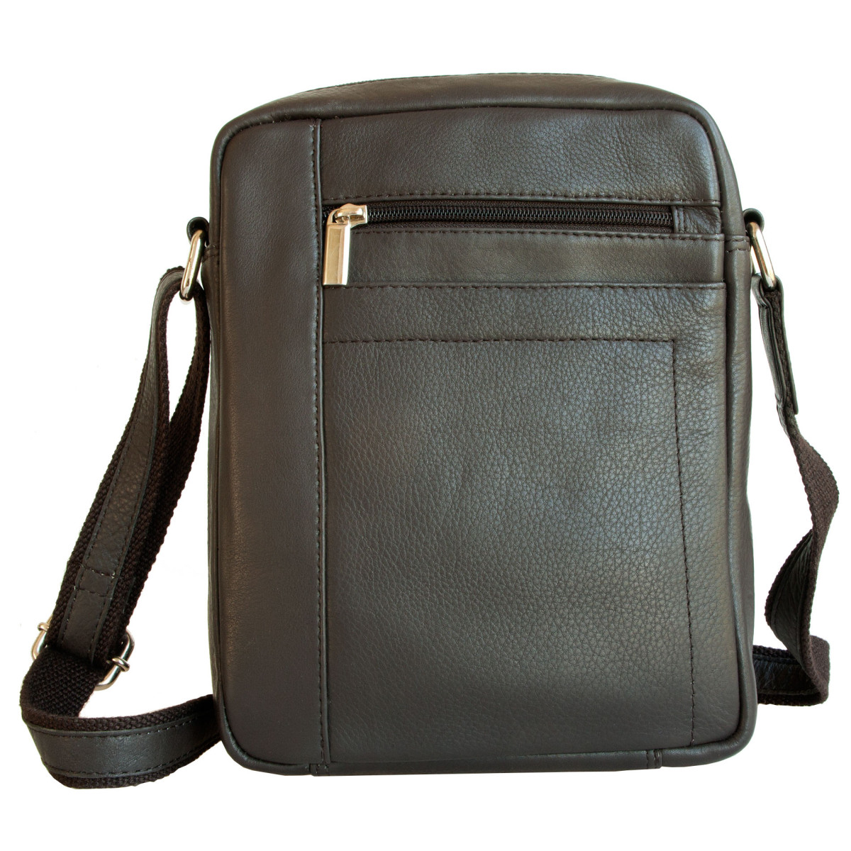 Střední pánská taška z měkké hnědé kůže s popruhem přes rameno. Rozměr 20 x 25 cm. Tloušťka podle plnosti 6-10 cm.