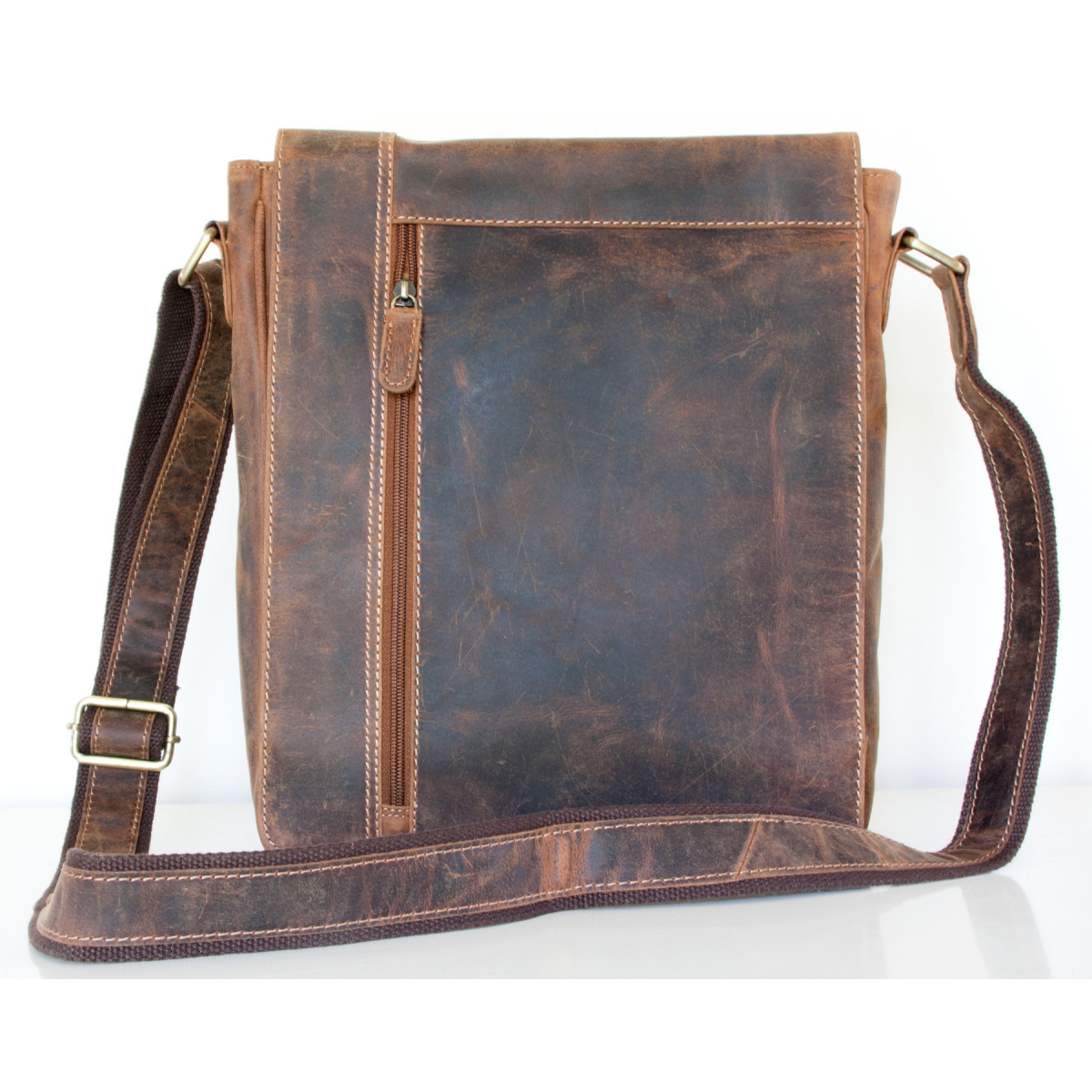 Středně velká pánská kožená taška Green Valley z lehké prané kůže s popruhem...