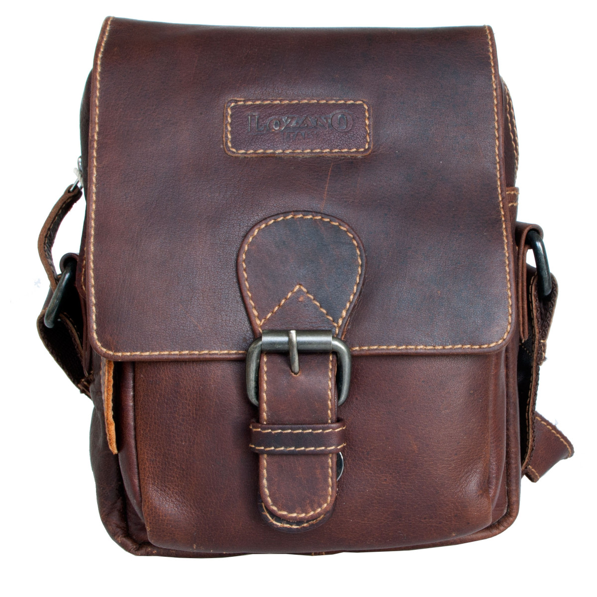 Menší pánská taška Lozano z pevné kůže s popruhem přes rameno. Rozměr 16 x 20 cm. Tloušťka podle plnosti 7-10 cm.