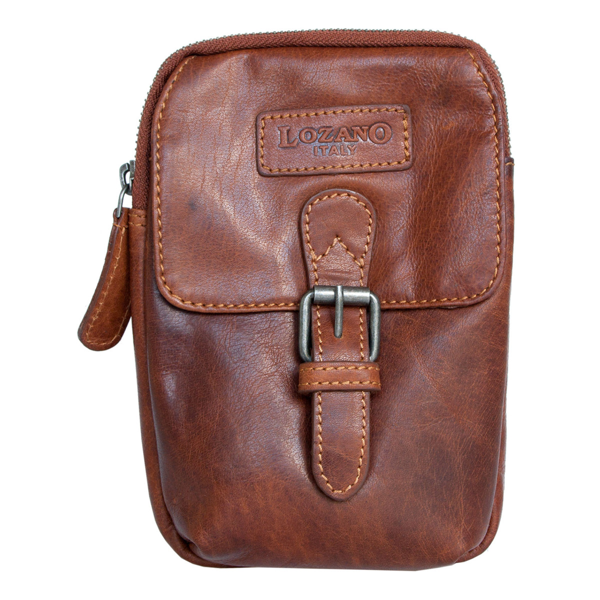 Malá pánská taška Lozano ze světle hnědé kůže s látkovou podšívkou, s poutkem za pas a popruhem přes rameno. Rozměr 13 x 19 cm. Hloubka podle plnosti 5 - 9 cm.
