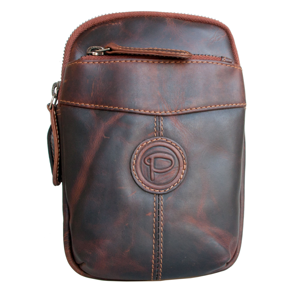 Tmavě hnědá kožená taštička Pedro na pásek nebo přes rameno z hlazené kůže s...